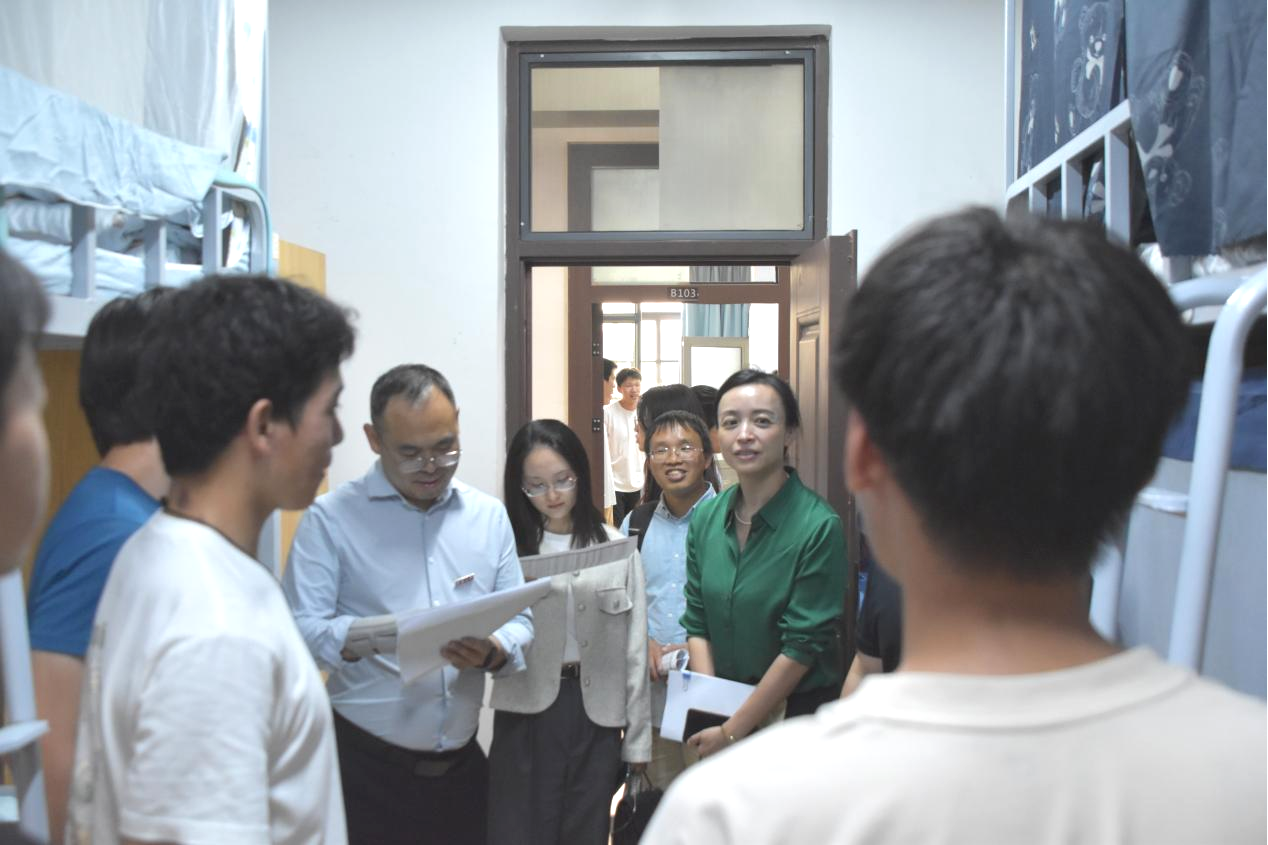 随后,学院党委书记杜芳芳、副书记崔骜、副院长周建军、新生年级辅导员王燕、25级各专业班主任张应应、易凤婷、王彪等老师一同走访宿舍现场,亲切慰问新生,了解入住情况与初步适应情况,解答疑问,提醒同学们开学初注意事项,并向2025级新同学表示热烈欢迎与深切关怀。