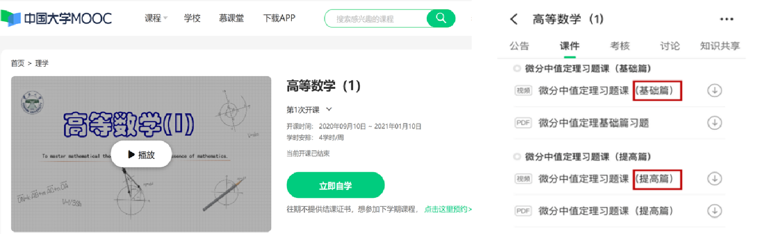 图1 课程在中国大学慕课平台的封面与分层架构截图