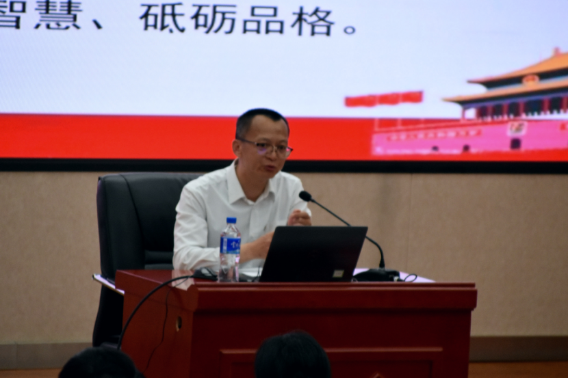 10月17日14:30,学院特邀中共云南省委党史研究室刘季处长于呈贡校区图书馆西附楼报告厅开展主题党课。他以“铭记党的历史 不负青春韶华”为主题,以党的百年奋斗征程为宏大背景,娓娓讲述了党在革命、建设与改革各个时期所形成的精神谱系与取得的辉煌成就。他紧密结合当前国家发展战略与青年一代的历史方位,深刻阐述了新时代青年所肩负的使命与担当,并深情勉励全体学员要从中汲取智慧和力量,筑牢信仰之基、补足精神之钙,主动将个人理想融入党和国家事业之中,在实现民族复兴的赛道上奋勇争先。
