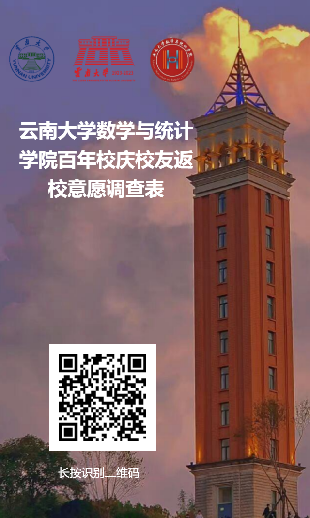 百载年华流转,百年岁月如歌,云南大学将在2023年4月20日(周四)迎来百年校庆。值此百年华诞之际,数学与统计学院诚邀各位校友拨冗前来母校欢聚交流,共享盛会。