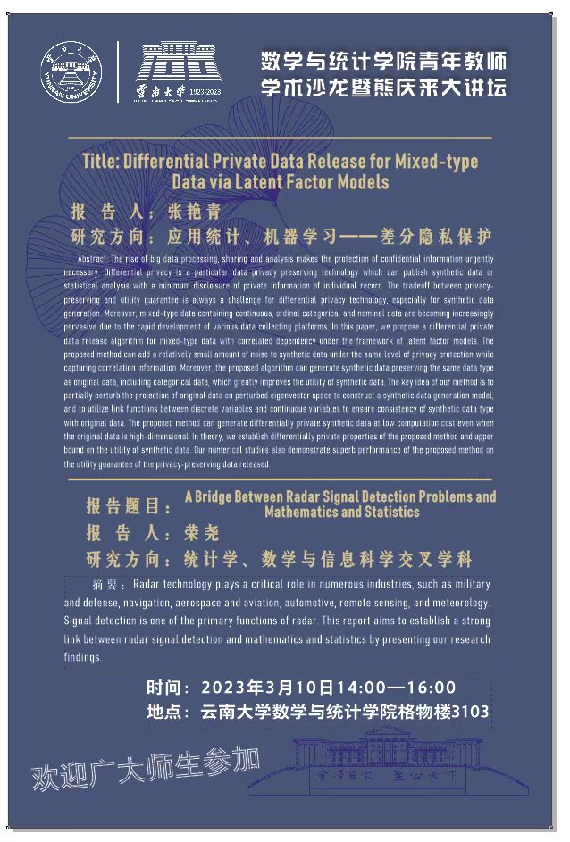 熊庆来大讲坛|数学与统计学院迎百年校庆系列学术沙龙2
