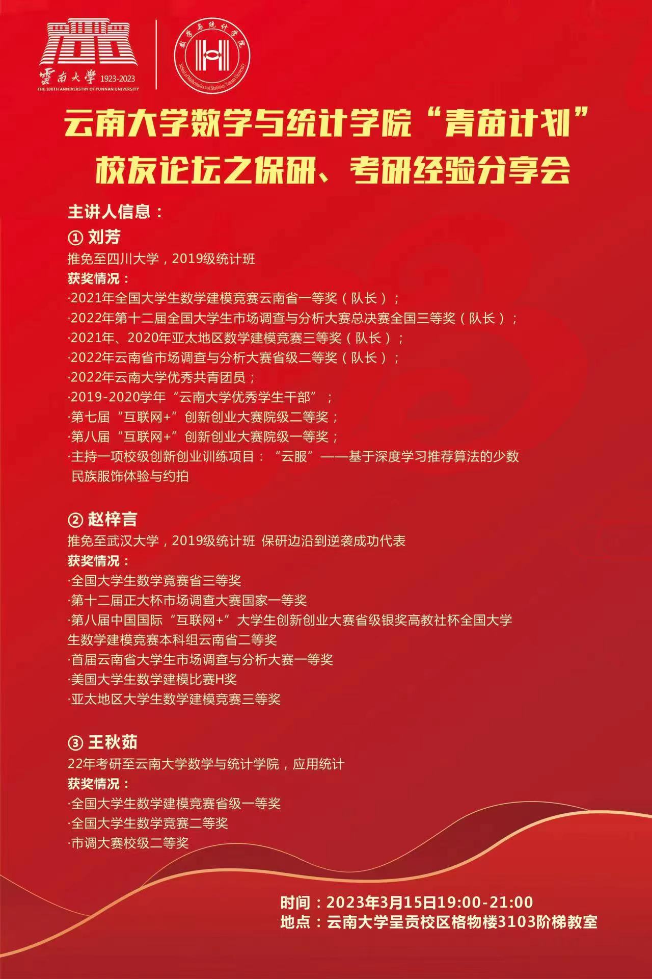 2023年3月15日晚19:00,为帮助学生了解保研、考研相关事宜,我院邀请三位在校同学在格物楼3103报告厅开展保研、考研经验分享会。
